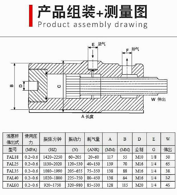 產品名稱:活塞桿伸出氣動振動器FAL-18 FAL-25 FAL35/FAL40/55/60 產品說明: 活塞桿伸出式振動器FAL18/25/35/FAL40/55/60全系列 質量好, 耐用,可任意角度安裝,沖擊力可調。 活塞振動器檢測系統FAL/25/35/FAL40/55/60 歡迎致電;0574-88873909 寧波飛馳FEICHIAN