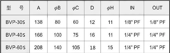 產品設計合理,質量可靠,國家專利號;ZL 201 9306 53803.0 BVP-30S BVP-40S BVP-60S